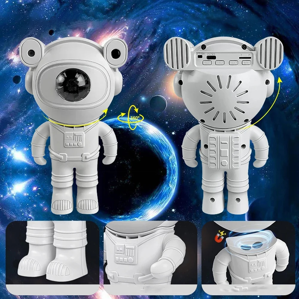 Projektor nočnej hviezdy je navrhnutý tak, aby vyzeral ako astronaut a astronautova hlava je magneticky spojená s telom, aby sa dal ľahko nastaviť uhol projekcie. Rameno je tiež nastaviteľné, čo z neho robí nielen projektor hviezdnej galaxie, ale aj peknú dekoratívnu ozdobu.