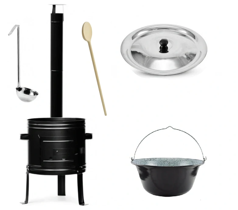Táto zostava je ideálnym riešením pre všetkých milovníkov tradičnej kuchyne a varenia na čerstvom vzduchu. Je vhodná na prípravu rôznych pokrmov, od guľášu cez kapustnicu až po iné jedlá, ktoré si vyžadujú pomalé varenie na otvorenom ohni. Vďaka tejto zostave budete mať vždy po ruke všetko potrebné na prípravu chutného a voňavého jedla, ktoré poteší všetkých vašich hostí.