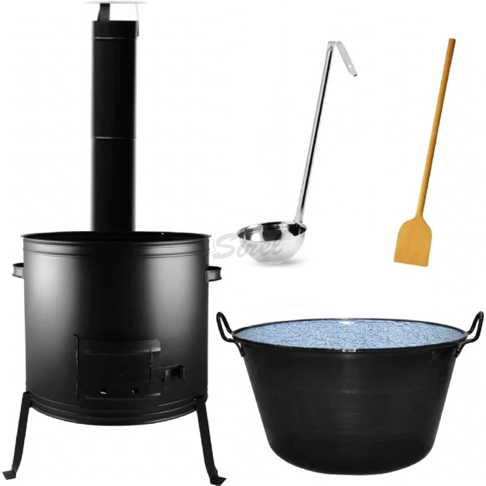 Táto kotlíková súprava, ponúka objem kotlíka 100 L, čo je ideálne pre väčšie rodinné oslavy alebo vonkajšie grilovačky. Vyberte si túto sadu a užite si varenie na čerstvom vzduchu.