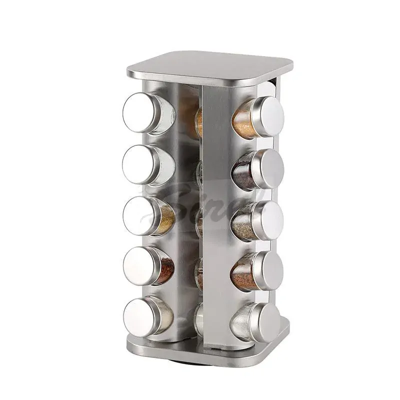 Elegantný a praktický doplnok každej kuchyne, kuchynskej linky alebo jedálenského stola. Stojan má robustnú kovovú konštrukciu. Dá sa ľahko otáčať, aby ste dosiahli na potrebné koreniny bez toho, aby ste pokrčili obrus. Každá korenička je vyrobená zo skla, má kovový uzáver a plastovú výlevku. Vďaka jednotnému, hladkému povrchu sa všetky prvky súpravy ľahko udržiavajú v čistote.